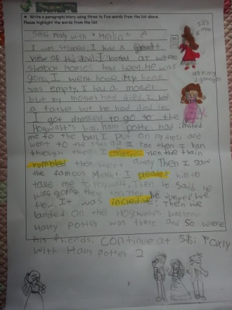 Your use of new vocabulary is great! As I mentioned last week, you are using a variety of sentences to make the writing interesting. You are also constructing correct sentences in English and I think you have basic understanding of English grammar! I do like this week's story and I am looking forward to reading the Silsi Focly with Harry Potter 2