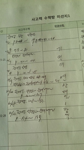 ¿¤¸®´Â »ç°í·Â ¼öÇÐÀº ÆÑÅä2´Ü°è Bµé¾î°¬¾î¿ä. ±³°ú¼öÇÐÀº 4Çгâ 1Çб⠼öÇÐ Àü°úº¸¸ç ¿¹½ÀÇϰí ÀÖ¾î¿ä.
