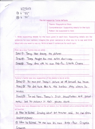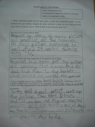 So, then Tommy said to art teacher ¡°I¡¯m going to be an artist when I grow up and my cousins told me that real artists don¡¯t copy. And besides, Miss Landers won¡¯t let me use my own sixty – fur crayola crayons.¡±