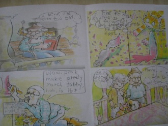I read the title "Paint the porch" and small title "porch" .Then I thought 'It maybe go on like this.Mr.Putter think his porch is so old, then he want to paint the porch. But he doesn't know which color he want.