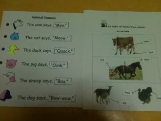 5¼¼ ÇÏÀºÀ̶û Farm animal Áñ°Ì°Ô Àоú½À´Ï´Ù. CD´Â 3¹ø µè°í ¸ÅÀÏ Çѵιø¾¿ Àоú¾î¿ä. ¶Ç Here is, Here are°°Àº ¹®Àå ¿¬½Àµµ ÇØºÃ¾î¿ä. ±×¸®°í catÀÌ fence À§¿¡ ÀÖ´Â°Ô ¸Â³ª¿ä? ¹ßÀÌ ¿ïŸ¸® À§¿¡ ÀÖ´Â °Í °°¾Æ¼... behind ³Ä on ÀÌ³Ä ³õ°í °í¹ÎÇ߳׿ä. ^^