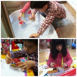 2. Making boat out of milk carton