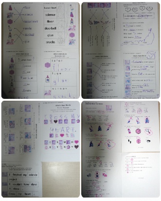 ¹ÎÁ¤À̵µ science project¸¦ ÇÑ´Ù¸é¼ »ö¿¬ÇÊ·Î ±×¸®´õ´Ï Å׵θ®µµ ±×·ÁÁÖ°í "I draw two hearts."¶ø´Ï´Ù.