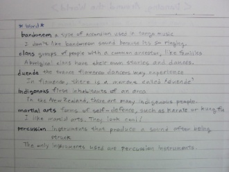 1. accompaniment - music that goes along with something else.