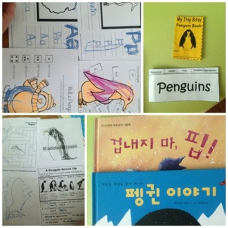 Æë±ÏÀÌ ¸ðÀÌ°Ô ÇÏ´õ´Ï "Penguins huddled up together. ""Penguins talked each other."¶ó°í ÇÏ´õ±º¿ä.