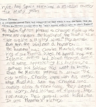 Army of the Muslims prepared to attack the city walls. But then Charles himself came into sight, with his army behind him. The horsemen of Islam charged out to meet him, and the two armies fought all day, until they could no longer see each other. And the next day they fought. But the Muslims began to worry about their wealth inside their tents. And instead of fighting, they rode back to protect their tents. They were surrounded by Franks and killed.