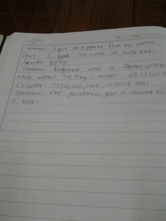 Write the meaning of the word and make the sentence with the word that you don¡¯t know before. (5,6,Middle1: 3 words)