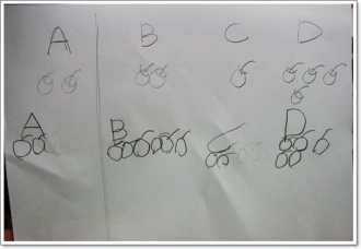 ¾ö¸¶°¡ A, B, C, D·Î ³ª´²¼ »ç°ú¸¦ ±×·Á¼ more, the same, fewer ·Î ¹®Á¦¸¦ ³Â´õ´Ï...