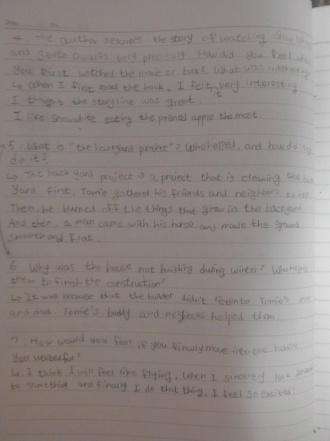 The ¡®backyard project¡¯ was a project cleaning the backyard. The first thing they have to do was to burn off all the stuff growing in the backyard. Bunch of People stood around the yard with buckets of water, and old brooms. And Tomie¡¯s mom stood holding a hose attached to the water faucet. It was successful. Then his dad hired an old Italian man who had a horse and a plow. After the yard was plowed, he made the ground smooth and flat.