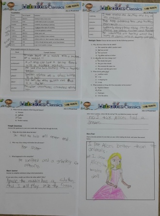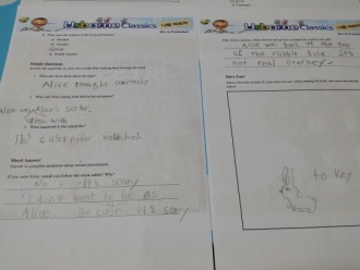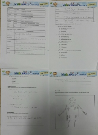 She wrote " I like Alice better than the animals. but I drew Alice like wooden doll" at Have fun section.
