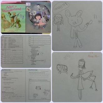 When I got the Alice in Wonderland, I really wanna teach the story to my monsters. I thought it would be little bit difficult for them so I tried to show the Korean video clip for the first time and to read the novel in English. I didn't know whatever they catched the whole story or not. So I just chose the creative section and said to draw the one of the favorite animals.