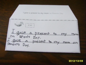 I gave my mom a present on Parents Day.¶ó°í ¹®ÀåÀ» ¸¸µé°í´Â to¸¦ ³ÖÀ» ÀÚ¸®°¡ ¾ø´Ù°í °¼¿ì¶×ÇÏ´õ¶ó±¸¿ä.