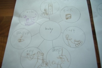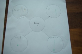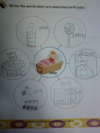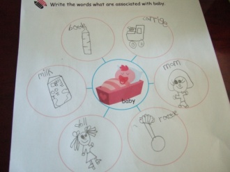 Write the words what are assosiated with baby.