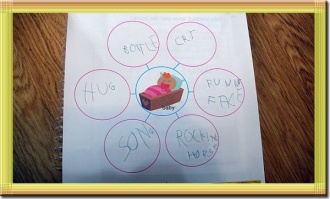 1. bottle, rattle , baby food, picture, song and book