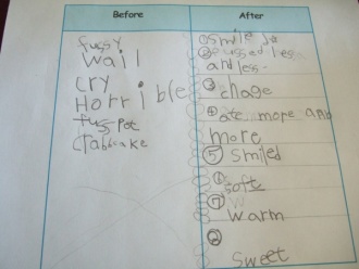 After : eat more and more / smile a lot at Iris/ big