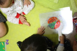 |  | The ladybug has eyes and jaws. ¹«´ç¹ú·¹´Â ´«°ú ÀÔÀÌ ÀÖ¾î¿ä |  | Do you want to draw the big ladybug that is on the magnifying glass? µ¸º¸±â À§¿¡ ÀÖ´Â Å« ¹«´ç¹ú·¹¸¦ ±×·Áº¼±î? |  | Yes, I want to. Let me take out some paints and color pencils. ³×. Àúµµ ±×¸®°í ½Í¾î¿ä. Á¦°¡ ¹°°¨°ú »ö¿¬ÇÊÀ» ²¨³¾²²¿ä |