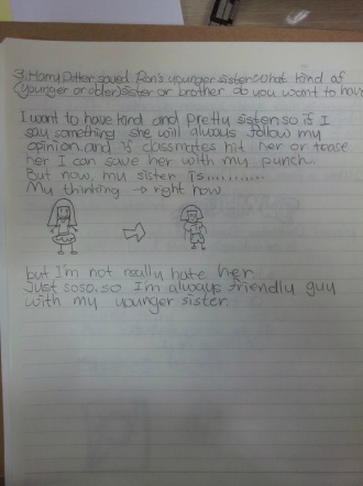 3. Harry potter saved Ron's yonger sister. What kind of (younger of older) sister or brother do you want to have?