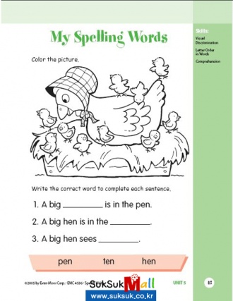 12°³·Î ±¸¼ºµÈ °¢ ´Ü¿øÀº ÀÐÀ» ²¨¸®(±Û°¨)¿Í À̾߱⠼ӿ¡ µîÀåÇÑ ¾îÈÖ ¸ñ·Ï(Spelling List)À» º¸°í µû¶ó¾²±â, ÆÛÁñÀ̳ª ºóÄ Ã¤¿ì±â µî°ú °°Àº ´Ù¾çÇÑ ÇüÅÂÀÇ Ã¶ÀÚ¾²±â Ȱµ¿, ¹®¹ý¿¬½À, ±Û ¾²±â ¿¬½À, Å×½ºÆ®·Î ±¸¼ºµÇ¾î ÀÖ½À´Ï´Ù. ¾²±â¿Í ÇÔ²² Ãʵî ÀúÇгâµé¿¡°Ô ÀûÇÕÇÑ ¹®¹ý¿¬½À Äڳʵµ ÇÔ²² ´Ù·ç°í ÀÖ¾î ¹®Àå ºÎÈ£ÀÇ ¾²ÀÓÀ̳ª ±âº»ÀûÀÎ ¹®¹ý»çÇ×À» ÀÌÇØÇϱ⠽±µµ·Ï °£´ÜÇÑ Á¤ÀÇ¿Í ÇÔ²² ¿¬½À¹®Á¦¸¦ ÇÔ²² ¼ö·ÏÇϰí ÀÖ½À´Ï´Ù. Àç¹Ì ¿ä¼Ò°¡ °çµé¿©Áø ¾²±â Ȱµ¿°ú ÇÔ²² ¹®¹ýÀ» ÀÌÇØÇÏ¸ç ¹®ÀåÀÇ ±¸Á¶µµ ÇÔ²² ÀÍÇôº¸¼¼¿ä.