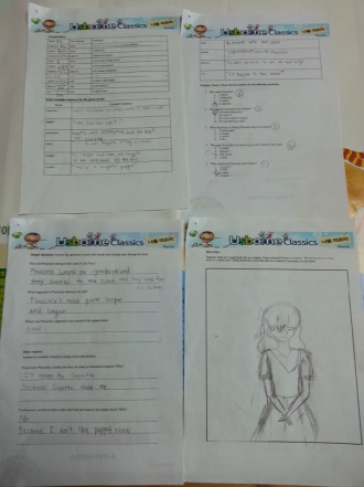 Next, fill out the worksheet we posted.The worksheet has five parts. There is a vocabulary, multiple choice, simple question, short answer, and a creativity section. Make sure to go back to the book when finding some of the answers. The pictures may help you remember what happened.