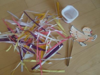 I prepared these p***es of paper for building a nest.