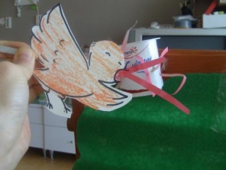 I'll attach tweezers on the bird picture with scotch tape.