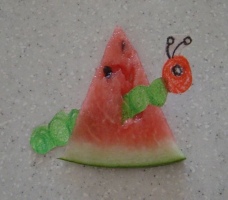 The caterpillar ate through one p***eof water melon