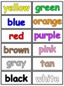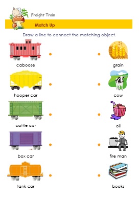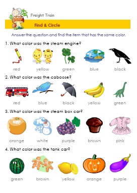 * Words :names of colors, names of train cars, action verbs