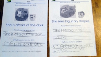 She sees big scary shapes. ¹®ÀåÀ» Àç¹ÌÀÖ¾îÇϳ׿ä. ¾Æ¹«·¡µµ ¸»ÇÏ¸é¼ ¼Õµ¿ÀÛÀÌ °¡´ÉÇØ¼ ±×·±µí..