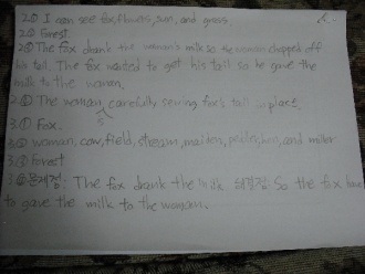 | 2nd ¹Ì¼Ç | Pridiction | Ã¥Àüü¸¦ ¼¼¼¼È÷ º¸´Â °ÍÀÌ ¾Æ´Ï°í Áß¿äºÎºÐ¸¸ Skimming ReadingÇÏ½Ã¸é¼ Pcture WalkÀ» ÅëÇØ ±×¸²¸¸À¸·Î À̾߱⸦ ÃßÃøÇØº¸¼¼¿ä. Àå¸éÀº ÀÚÀ¯·Î ÇÏ½Ã°í ¾Æ·¡ÀÇ ´äÀ» ¾²½Ã¸é µË´Ï´Ù. 1)What can you see in the cover? 2)Where is this? 3)What's happing? 4)What are they doing?
